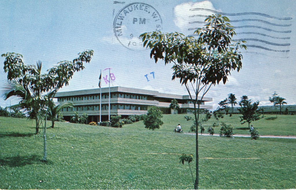 Above is F.F. Hill Hall, the administration building of the International Institute of Tropical Agriculture, Ibadan, Nigeria. (1980)