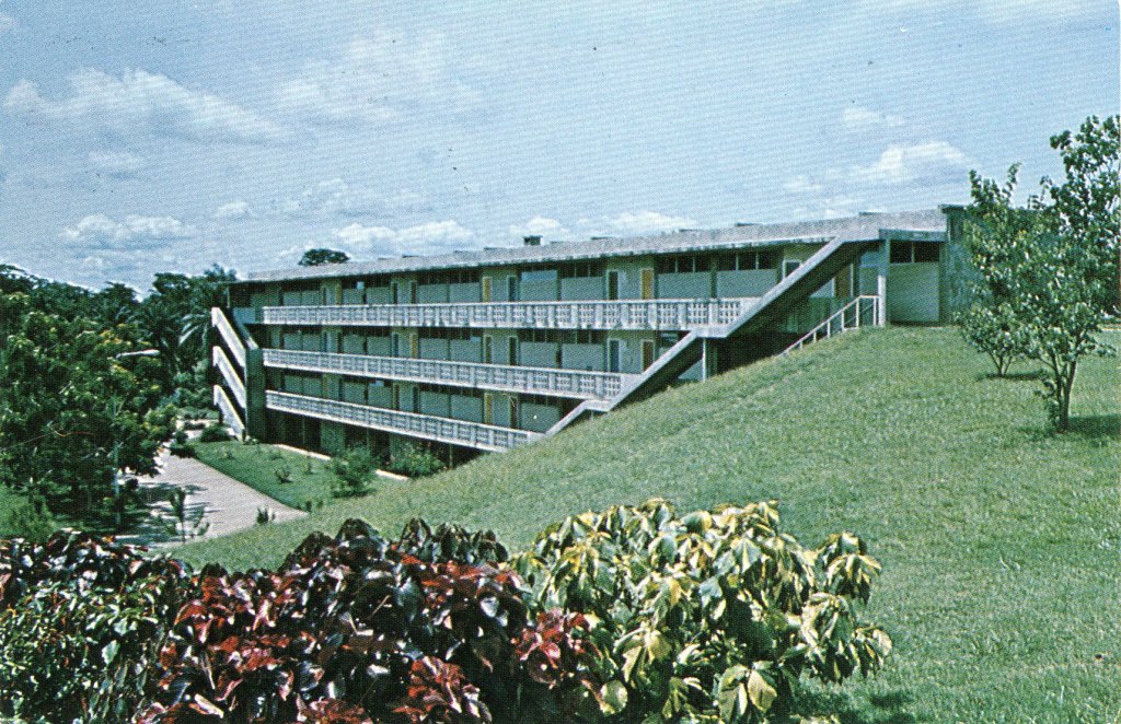 My family lived at IITA from 1975 to 1980. Above is a close-up of one of four residence halls with rooms or flatlets for post-doctoral and research fellow and training participants at the International Institute of Tropical Agriculture, Ibadan, Nigeria. (1980)