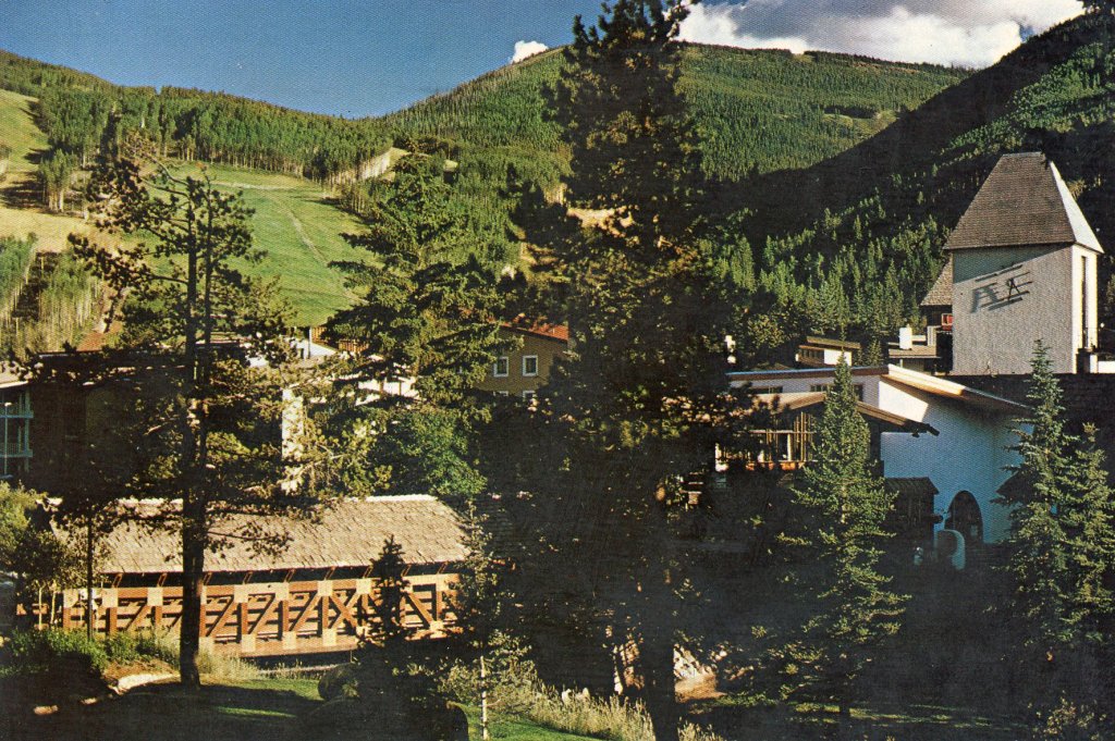 We have a fire in the fireplace – the view up the mountain is lovely. Also a nice view of tennis courts, swimming pool, and the bubbling stream all besides the lovely mts. I just rested and did nothing today – but Bill and K went to the very top on the ski lift and took some hikes up there. Rain again this aft, but clear again this eve. Nice talking to you last nite.