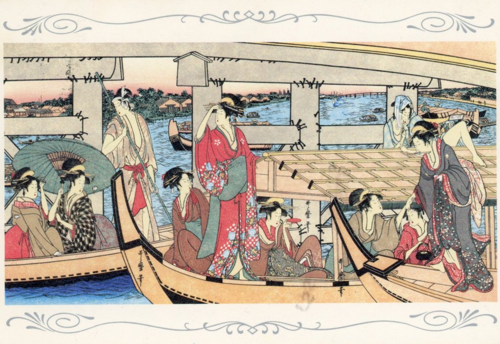 Enjoying a Cool at the Ryogoku-bashi Bridge by Utamaro Kitagawa (1753-1806), Ukiyoe A Series of Six Pictures