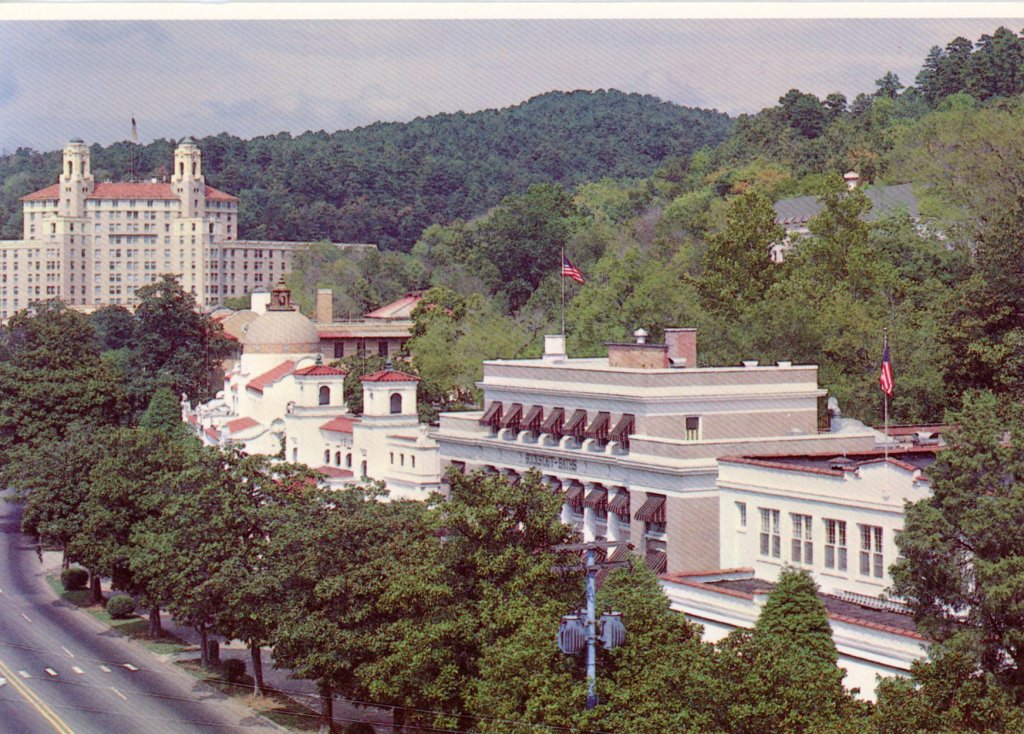 The most distinctive feature of the park is the row of bathhouses in the heart of the city. Each bathhouse has its own character but shares fronting magnolias, holly hedges and other decorative plantings