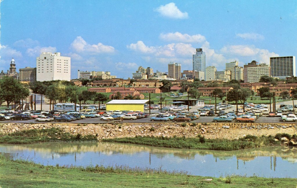 Beautiful “Skyhigh” skyline. Trinity River in foreground.