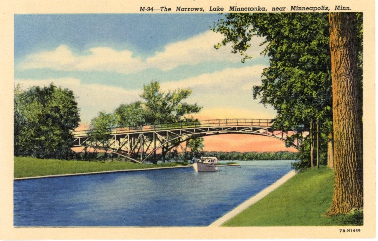 This channel connects the upper and lower lakes of Minnetonka. Lake Minnetonka located about 15 miles west of Minneapolis has over 300 miles of shore-line. It is noted for its scenic beauty, fishing, sailing and a summer playground. A large amusement part is on the water’s edge at Excelsior, Minnesota.