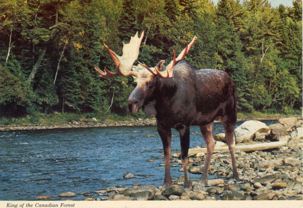 World’s Largest Antlered Mammal – Taller than a horse, the Canadian moose can weigh in excess of 1200 pounds, and have a rack spread of up to 64 inches. He eats twigs an shrubs, but his food is the root of the water lily.
