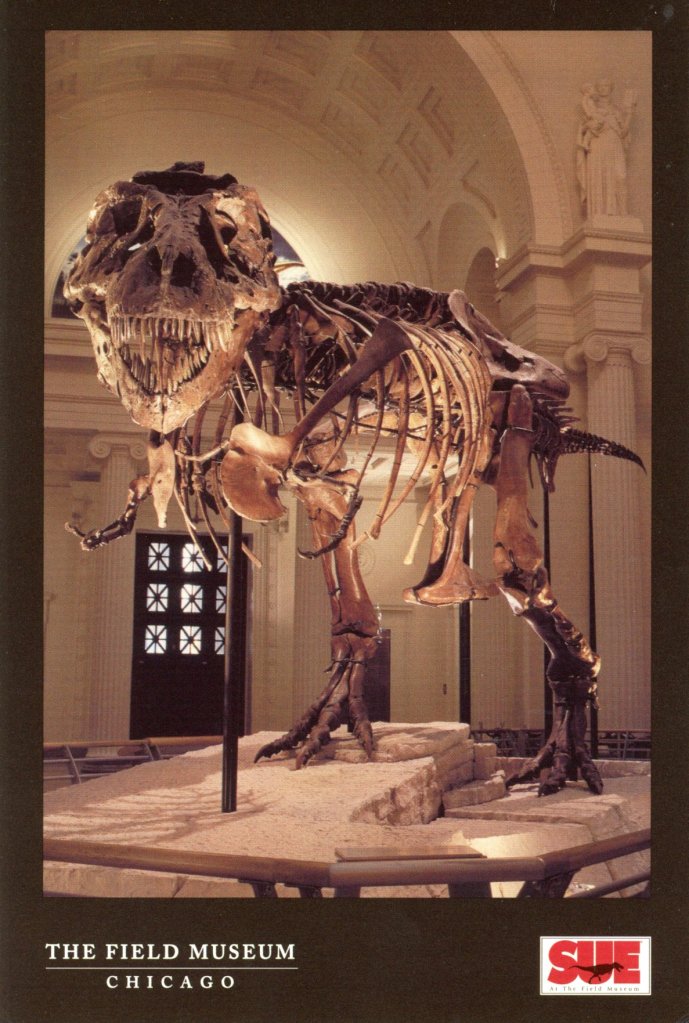 Sue, the largest, most complete, and best-preserved Tyrannosaurus rex skeleton ever found, was discovered in 1990 near Faith, South Dakota by fossil hunter Susan Hendrickson. Sue’s mounted skeleton was unveiled at The Field Museum on May 17, 2000.