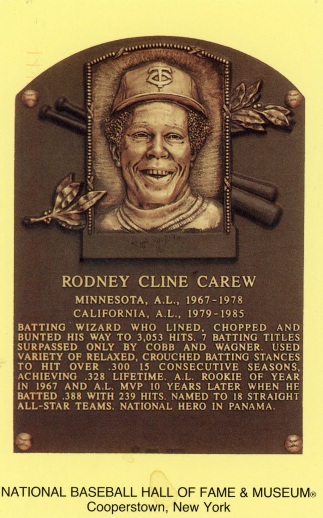Rodney C. Carew Elected to the National Baseball Hall of Fame 1991.