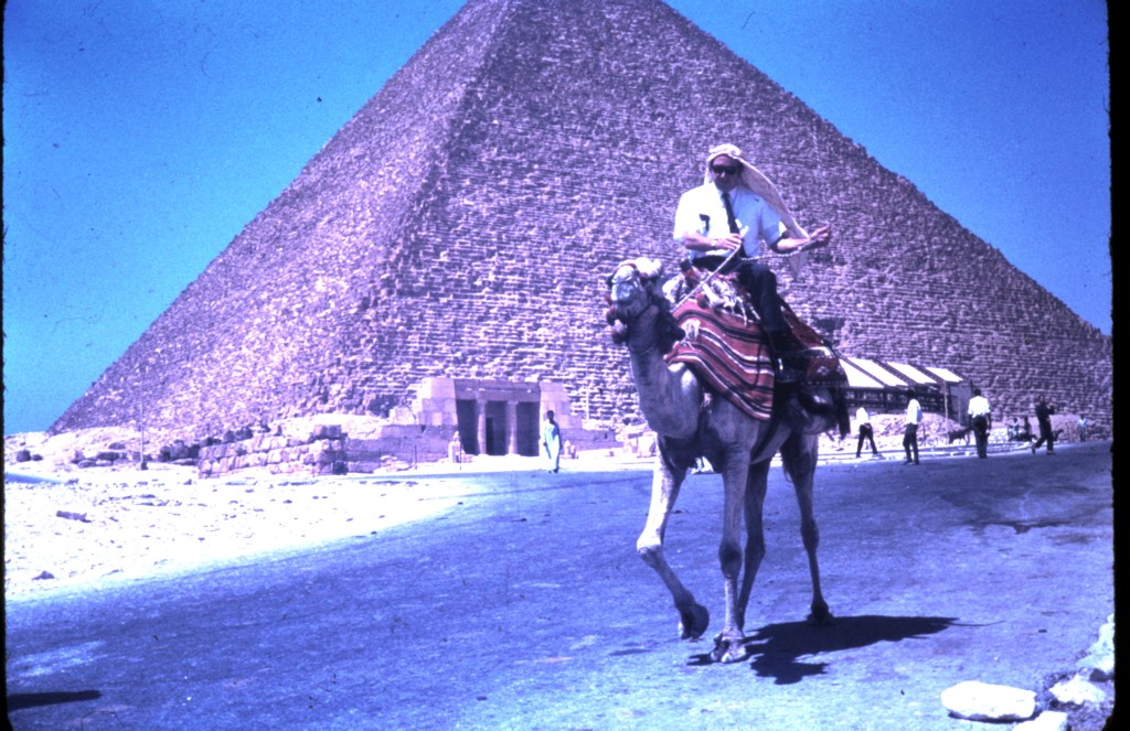 Fifty years ago my father visited Egypt and went to Giza and rode a camel. My son went with me on this trip and my father told him he should ride a camel. We tried to re-create the scene.