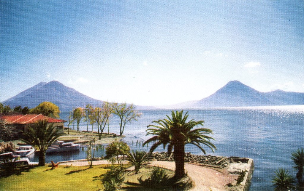 The postcard says, View of Lake Atitlan, a great tourist attraction. Land of Eternal Spring.