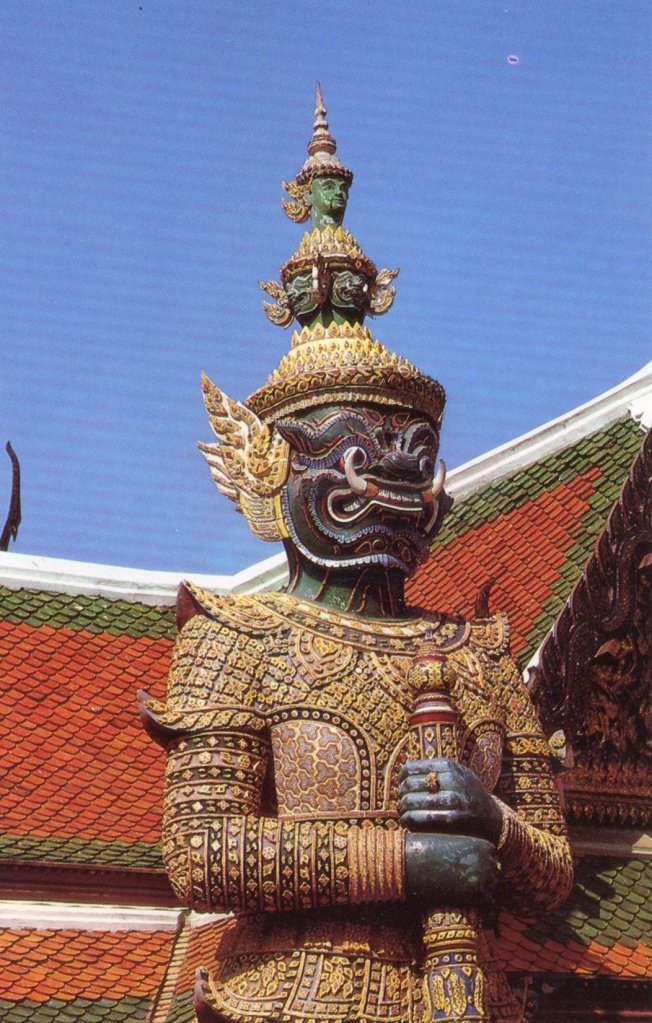 A giant standing on the ground of the Emerald Buddha Temple, Bangkok, Thailand.