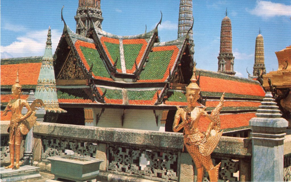 Kin-na-ri (mythological half-man half-bird) in front of Thebdidon royal pantheon.