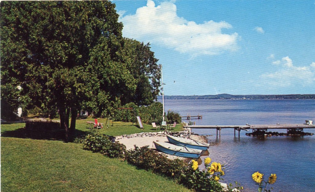 Open all four seasons. Picture windows facing water. Combination tub and shower baths. Luxury electric blankets. Box springs and innerspring mattresses. Walk-on-a-cloud carpeting. Food available. Private beach and dock. Scenic, peaceful, comfortable, accessible.